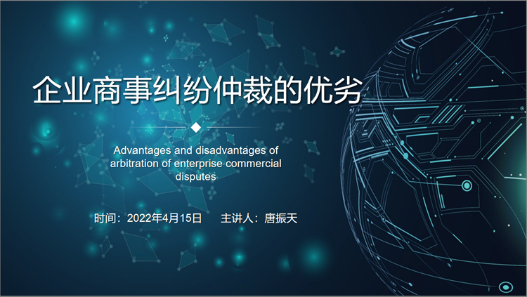 〖企业专项法律培训〗第五期 企业商事纠纷仲裁得优劣-----唐振天